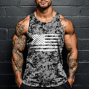 Bărbați 4 iulie - 250 de ani de existență a Statelor Unite Steagul SUA Patriotic Cămașă Camașă cu nasturi Cămașă fără mâneci Fără manșon Moda Casual Concediu Vară Primăvară Răsfrânt Două buzunare în