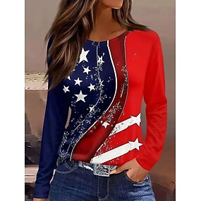 Ziua Independenței Americane Pentru femei Tricou Tee Top Imprimeu Grafic Steag Modă Stilat Clasic Manșon Lung Stil Nautic Topuri obișnuite Zilnic Sfârșit de săptămână Îmbrăcăminte de vacanță