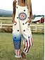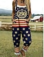 Salopetă de damă pentru Ziua Independenței Americii, model activ, grafică, fără mâneci, croială largă, guler rotund, model patchwork, cu buzunar, zilnic, vacanță, croială lejeră, roșie, vară
