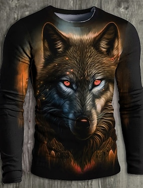 Bărbați Animal Lup Tricou Manșon Lung Tricou Tipărire 3D Stil Nautic Cămașă Modă De Bază Casual Zilnic Stradă Albastru piscină Albastru Intens Portocaliu Vară Primăvară Îmbrăcăminte S M L XL XXL XXXL