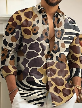 Bărbați Leopard Print Zebră Cămașă Camașă cu nasturi Manșon Lung Vintage Retro Casual În aer liber Concediu Primăvară Toamnă Răsfrânt Imprimare 3D cămăși cu guler Albastru piscină Mov Maro