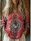 Pentru femei Cămașă Tunică Imprimeu Floral Grafic Boemia Zilnic Stilat Manșon Lung În V Topuri obișnuite Zilnic Concediu Gri Vară Primăvară