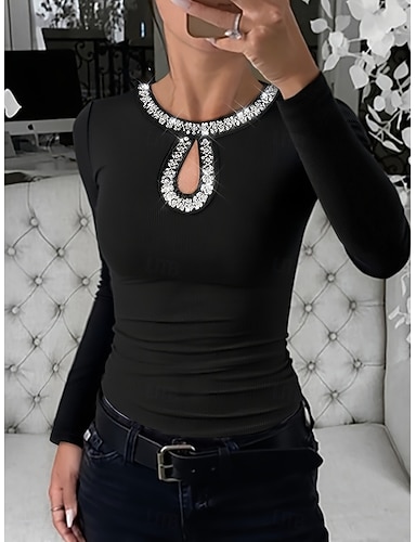 Pentru femei Bluză Culoare solidă Stilat Casual Manșon Lung Stil Nautic Topuri obișnuite Zilnic Peteci Strălucire Negru Roșu Vin Albastru piscină Trifoi Primăvară Toamnă Iarnă