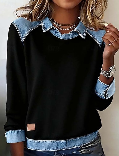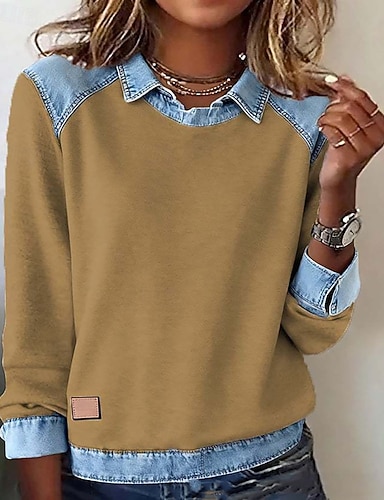 Tricou pentru femei cu mânecă lungă gât clasic tunică grafic geometric elegant vintage stilat tops regulate zilnic imprimeu galben roz albastru pre-toamnă