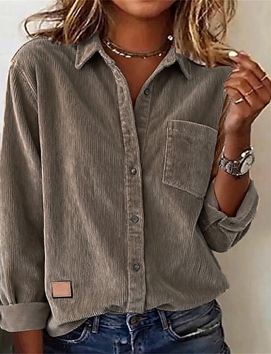 Pentru femei Cămașă popover Cămașă casual Bluză Nasturi Culoare solidă Elegant Stilat Oficial Manșon Lung Răsfrânt Topuri obișnuite Zilnic Muncă Concediu Negru Alb Bleumarin Maro Primăvară Toamnă