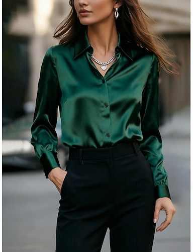 Pentru femei Cămașă Cămașă din satin Cămașă casual Bluză Nasturi Simplu Stilat Clasic Modern Manșon Lung Guler Cămașă Topuri obișnuite Zilnic Concediu Ieșire Negru Alb Roșu-aprins Mov Vară Primăvară