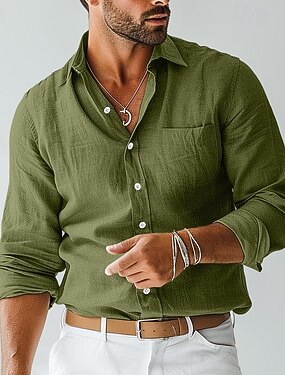 Bărbați Cămașă din bumbac și in Simplu Vacanță Negru Alb Roșu Vin Albastru celest Manșon Lung Rever Îmbrăcăminte