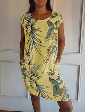Pentru femei Rochii Midi In din bumbac artificial Rochie de schimb Rochie de Vară Rochie casual Elegant Modă Modern Zilnic Vacanță Ieșire Fit regulat Simplu Fără manșon Stil Nautic Alb Galben Var