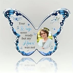 Placă memorială personalizată cu fluturi, cadou de condoleanțe acrilice cu fotografie personalizată pentru pierderea unei persoane dragi, decor de masă pentru Ziua Îndrăgostiților, Crăciun, Ziua Recunoștinței, absolvire