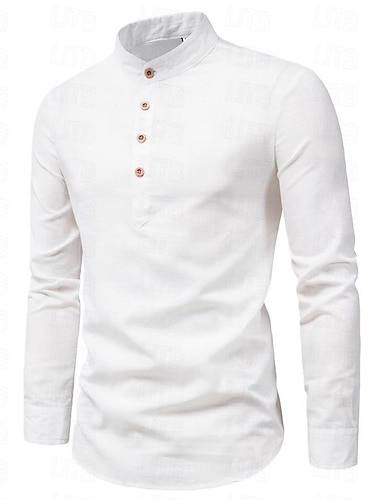 Bărbați Cămașă de in Cămașă popover Cămașă de vară Costum de plajă Cămașă casual Cămașă cu guler bandă Simplu Vacanță Hawaiian Negru Alb Roz Îmbujorat Albastru piscină Manșon Lung Henley Primavara