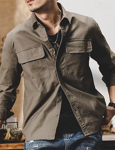 Bărbați Cămașă Îmbrăcăminte de lucru Cămăși Cămăși de lucru Camașă cu nasturi Cămașă cargo Trifoi Kaki Manșon Lung Simplu Rever Vacanță Concediu Buzunar frontal Îmbrăcăminte Modă Casual Comfortabil