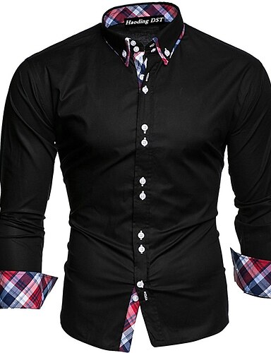 Bărbați Cămașă Cămașă de Costum Camașă cu nasturi Simplu Nuntă Zilnic Negru Alb Manșon Lung Răsfrânt Primăvara & toamnă Îmbrăcăminte Peteci