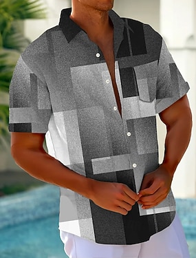 Bărbați Bloc Culoare Peteci Culoare gradient Cămașă Cămașă de vară Camașă cu nasturi Manșon scurt Moda Casual În aer liber Vacanță Zilnice Vară Primăvară Răsfrânt Imprimare 3D cămăși cu guler Un