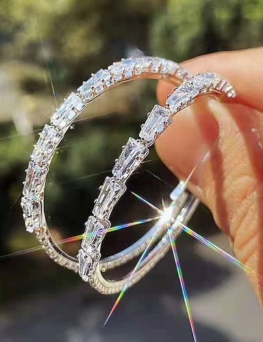 Cercei Hoop din Zirconiu Cubic Argintiu Stil Vintage Geometric Culoare Vintage Cercei Bijuterii Argint pentru Petrecerea de Nuntă Vacanță 1 Pereche