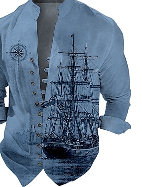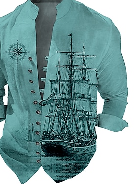 Bărbați Navă Pirat Cranii Cămașă Henley Tipărire 3D Modă Casual Vintage Retro Vacanță Zilnic Ieșire Vară Albastru piscină Mov Kaki Gri Henley Tricou Henley