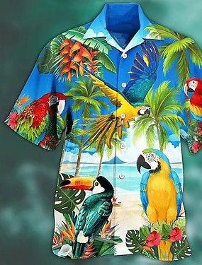 papagal tropical hawaian stațiune pentru bărbați pantaloni casual imprimați 3d pantaloni largi, drepte, talie elastică cu șnur poliester aloha pantaloni de plajă de vară hawaian de la s la 3xl