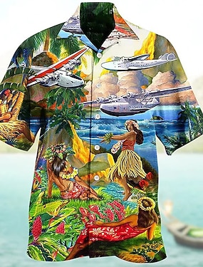 Bărbați Autobuz Cămașă Cămașă hawaiană Cămașă Aloha Mânecă scurtă Cămașă Răsfrânt Modă Șic Stradă Designer În aer liber Stradă Casual Albastru piscină Trifoi S M L
