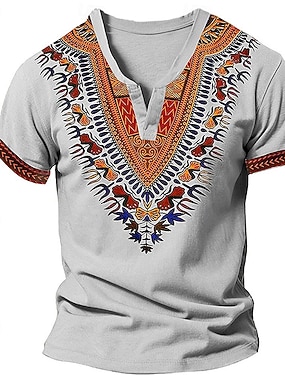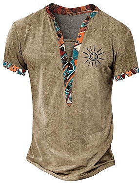 Bărbați Model african Tricou Cămașă Henley Manșon scurt Tipărire 3D Designer Έθνικ Casual Zilnic Vară Albastru piscină Kaki În V Henley Tricou Henley
