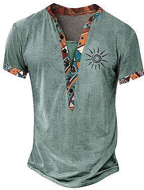 Bărbați Tribal Bandana Print Tricou Cămașă Henley Manșon scurt Tipărire 3D Designer Έθνικ Vacanță Casual Zilnic Vară Primăvară Galben Trifoi Kaki Henley Tricou Henley