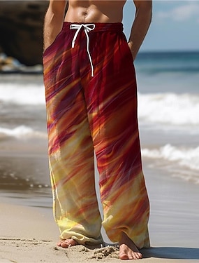 Bărbați Grafic Pantaloni casual Talie medie Nuntă Picior drept Vară Primăvară Tipărire 3D Galben Roșu-aprins Albastru piscină