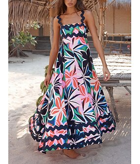Pentru femei Rochie Maxi Rochie A line Rochie Slip Vacanță Casual În aer liber Ieșire Potrivire Largă Floral Grafic Fără manșon Bretele Spagheti Albastru piscină Bleumarin Negru Albastru celest Var