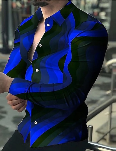 Bărbați Dungi Geometrie Flacără Cămașă Camașă cu nasturi Manșon Lung Modă Designer Casual În aer liber Zilnic Toamna iarna Răsfrânt Imprimeu Buton în jos Bleumarin Albastru piscină Albastru celest