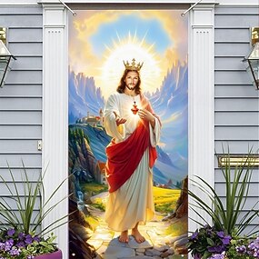 Husă de ușă de Paște cu imaginea sacră a lui Iisus Hristos, decor religios creștin pentru casă pentru sărbători sfinte, perfectă pentru decor religios de Paște și primăvară pentru uși și intrări