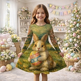 Paște Girls ' 3D Grafic Animal Iepure Rochie Manșon Lung Tipărire 3D Primăvară Toamnă Zilnic Vacanță Petrecere Casual Prințesă Frumoasa Copii 4-12 ani Rochie casual Rochie A line Lungime Genunchi Fit