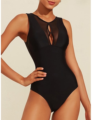 Pentru femei Costume de Baie O bucată Costum de baie Găurite Culoare solidă / simplă Negru Rundă Costume de baie Stiluri de Plajă