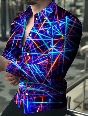 Bărbați Model Geometric Linijska Cămașă Camașă cu nasturi Manșon Lung Modă Designer Casual În aer liber Stradă Concediu Vară Primăvară Răsfrânt Imprimeu Buton în jos Albastru piscină Galben Roz