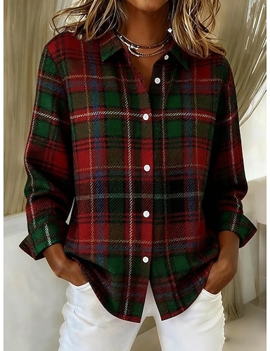 Pentru femei Bluză Buzunar Culoare solidă Casual Manșon Lung Guler Cămașă Vacanță Ieșire Alb Roșu Vin Portocaliu Trifoi Toamnă Iarnă