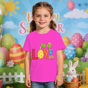 100% Bumbac Paște Copii Fete Alb Iubire Iepure Tricou Stil Nautic Manșon scurt Vacanță Sporturi & Exterior Zilnice Activ Șic Stradă Casual Imprimare Vară Primăvară
