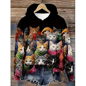 Hanorac pentru femei pulover cu glugă oversized mânecă lungă casual grafic animal pisică vintage modă western glugă regular topuri de stradă îmbrăcăminte zilnică imprimeu buzunar frontal negru toamnă