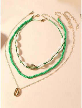 set de colier boho cauri de damă – bijuterii de plajă în straturi cu accente aurii, choker de surf de vară realizat manual pentru vacanțe, festivaluri și îmbrăcăminte casual