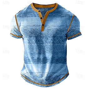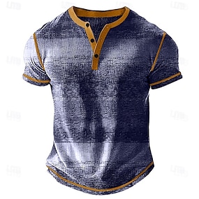Bărbați Grafic Gradiant Cămașă Henley Manșon scurt Tipărire 3D Modă Designer Comfortabil Zilnic În aer liber Vară Albastru piscină Maro Verde Gri Henley Tricou Henley