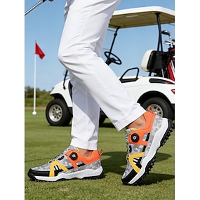 Pantofi de golf albi și galbeni pentru bărbați, talpă exterioară cu crampoane care îmbunătățește aderența, croială confortabilă, perfecți pentru terenurile de golf