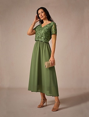 Pentru femei Rochie Maxi Rochie A line Elegant Oficial Invitat la nunta Petrecere cu cocktail Fit regulat Manșon scurt În V Verde salvie Roz Îmbujorat Bleumarin Verde Închis Vară