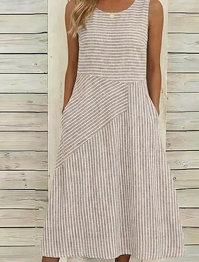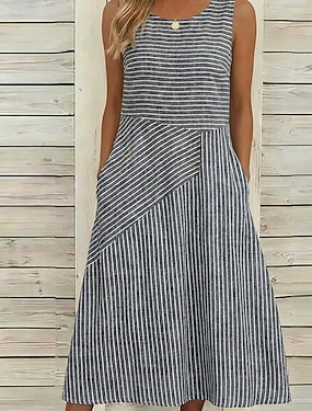 Pentru femei Rochii Midi Rochie casual Rochie A line Elegant Stilat Casual Zilnic Vacanță Potrivire Largă Dunga Manșon scurt Stil Nautic Gri Albastru Deschis Vară Primăvară