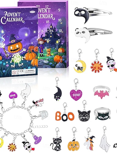 Calendar de Advent de Halloween 2025 pentru fete și băieți cu 24 de zile, calendar unic pentru numărătoare inversă, design de castel înfricoșător, cutie oarbă, brățară cu pandantiv DIY creativă