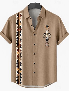 Bărbați Έθνικ Cămașă Cămașă de in Cămașă de vară Manșon scurt Epocă Έθνικ Casual Zilnic Vacanță Vară Primăvară Guler mandarin Imprimeu Albastru piscină Kaki