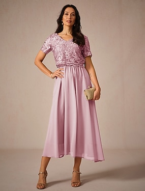 Pentru femei Rochii Lungime Genunchi Rochie cu Straturi Elegant Oficial Fluture Invitat la nunta Petrecere cu cocktail Fit regulat Simplu Manșon scurt Stil Nautic Mov Deschis Vară