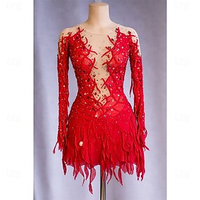 Rochie de Patinaj Artistic Pentru femei Fete Πατινάζ στο πάγο Rochii Rosu Peteci Mâneci cu Gaura Spandex Plasă Înaltă Elasticitate Antrenament Competiție Ținută Patinaj Clasic Cristale / Strasuri