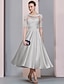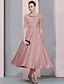 Rochie A-Line Mama Miresei Invitată la Nuntă Elegantă Înălțime Scăzută Asimetrică Decolteu Rotund Lungime Ceai Satén Cu Dantelă Mâneci 3/4 cu Plisări Aplicații