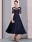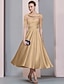 Rochie Mama Miresei A-Line Invitat de Nuntă Elegant Vintage Guler Rotund La Ceai Satin Dantelă Mâneci Medii cu Aplicații Plisate