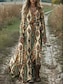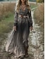 Pentru femei Rochie Maxi Rochie A line Rochie plisata Rochie Fit And Flare Boho Dată Ieșire Potrivire Largă Floral Grafic Manșon Lung În V Mov Maro Trifoi Primăvară Toamnă Iarnă
