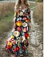 Pentru femei Rochie Maxi Rochie A line Rochie plisata Rochie Fit And Flare Boho Dată Ieșire Fit regulat Floral Grafic Animal Manșon Lung În V Albastru piscină Portocaliu Maro Primăvară Toamnă Iarnă