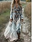 Pentru femei Rochie Maxi Rochie A line Rochie plisata Rochie Fit And Flare Vacanță Casual Boho Dată Ieșire Fit regulat Floral Grafic Geometric Manșon Lung În V Verde Deschis Albastru piscină Gri