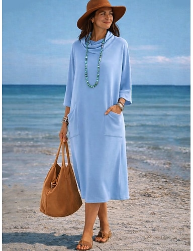 Pentru femei Rochie Maxi Rochie de schimb Casual Zilnic Potrivire Largă Simplu Lungime Manșon 3/4 Glugă Gât Albastru piscină Vară Primăvară Toamnă