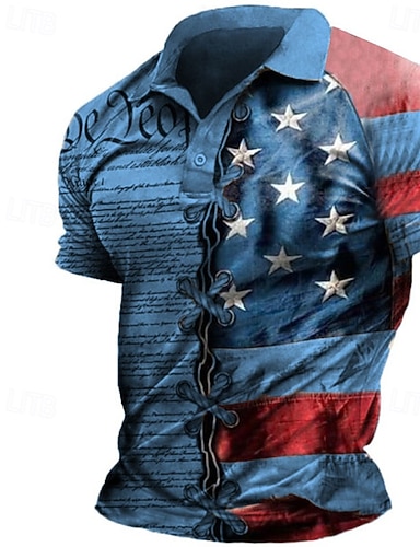 Cămașă bărbați cu steagul American cămașă cu nasturi fashion modă de stradă designer în aer liber de zi Ziua Independenței vară primăvară guler întors imprimare