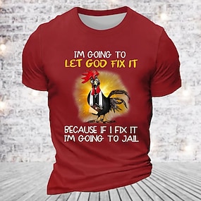 Când m-a făcut Dumnezeu a semnat și a spus că va fi distractiv Tricou imprimat 3D pentru bărbați cu guler rotund Stilul zilnic Negru Albastru Verde Îmbrăcăminte de vară primăvară